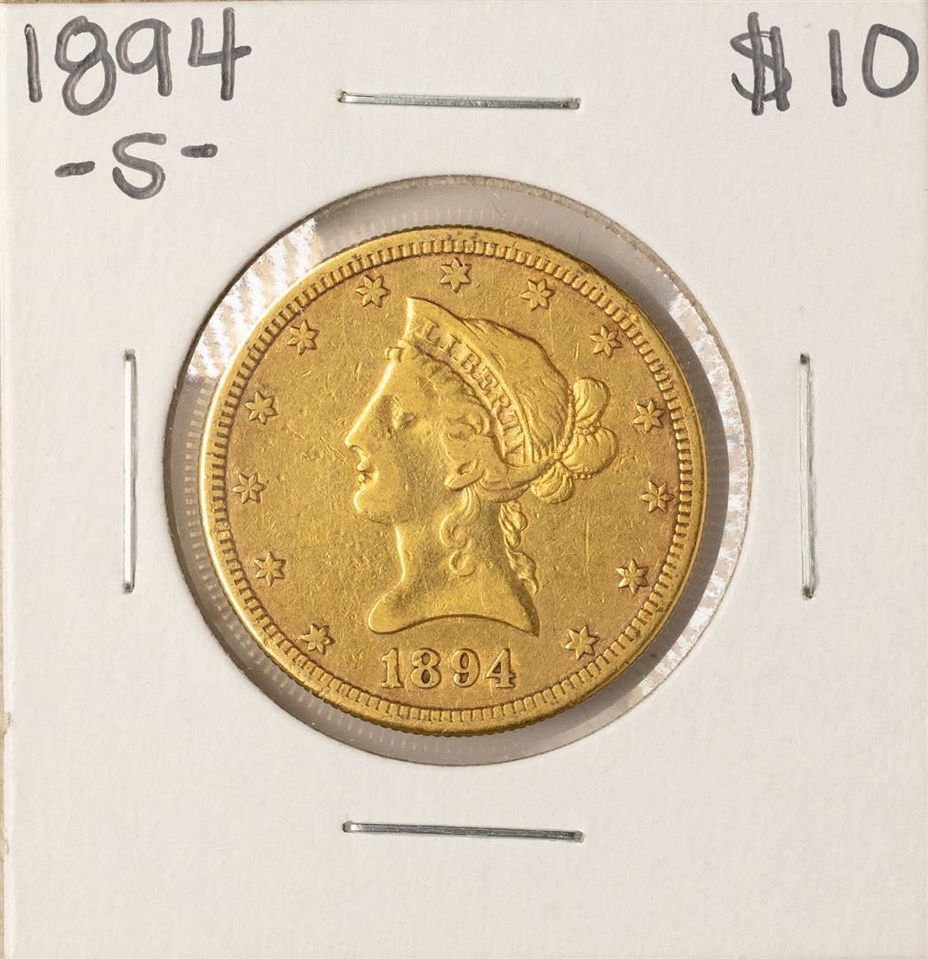 One 1894-S $10 Liberty Head Eagle Gold Coin.
