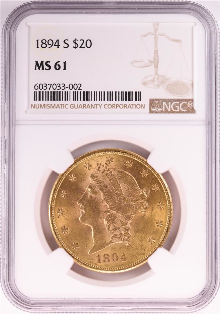 One 1894-S $20 Liberty Head Double Eagle Gold Coin NGC MS61. NGC Certified.