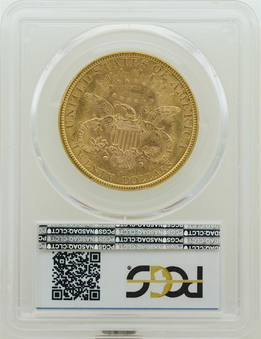 One 1894-S $20 Liberty Head Double Eagle Gold Coin PCGS AU58. PCGS Graded.
