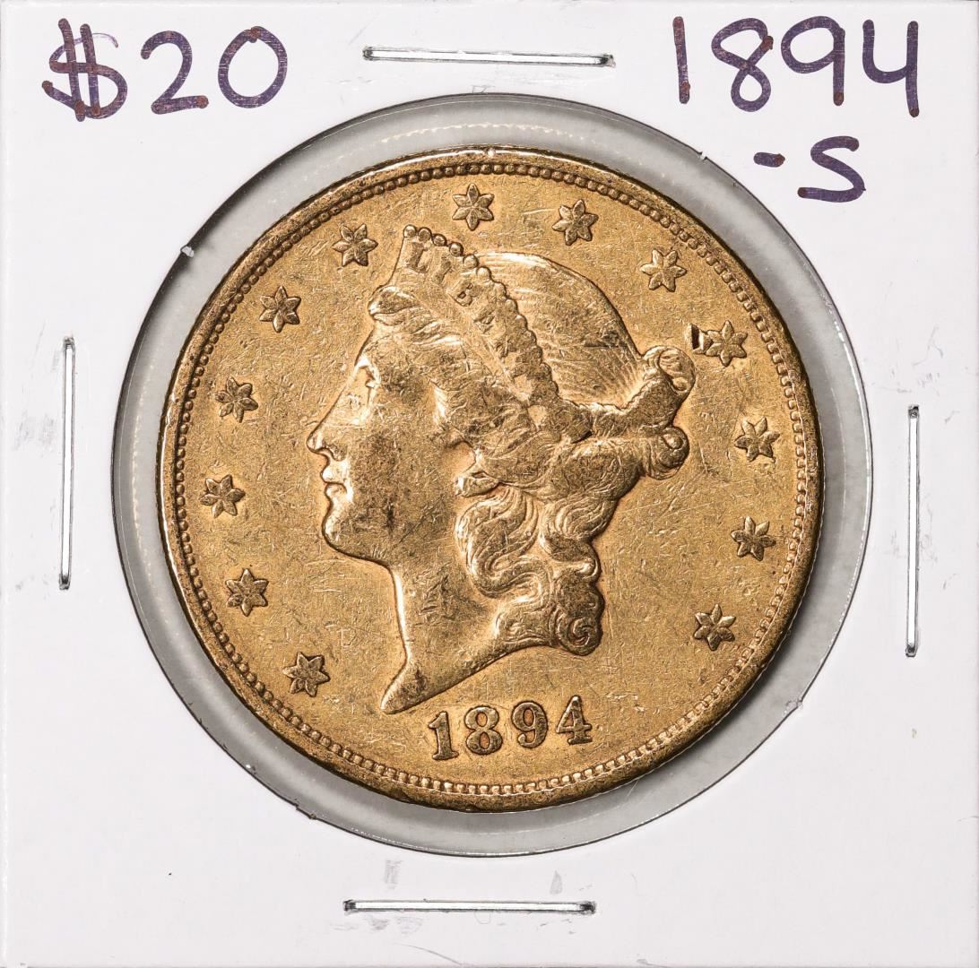 One 1894-S $20 Liberty Head Double Eagle Gold Coin.