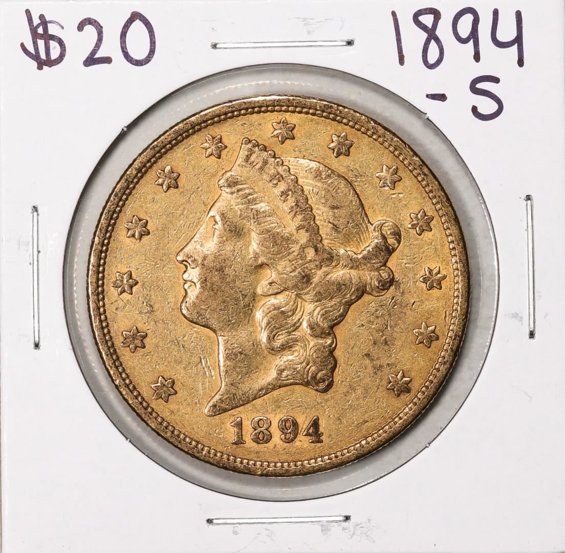One 1894-S $20 Liberty Head Double Eagle Gold Coin.