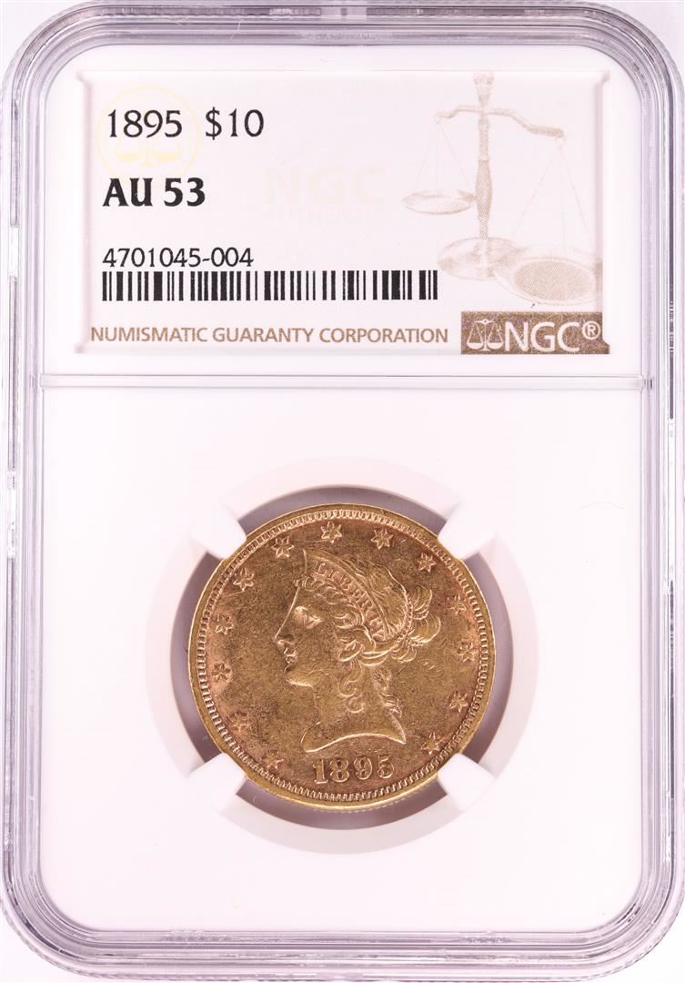One 1895 $10 Liberty Head Eagle Gold Coin NGC AU53. NGC Certified.