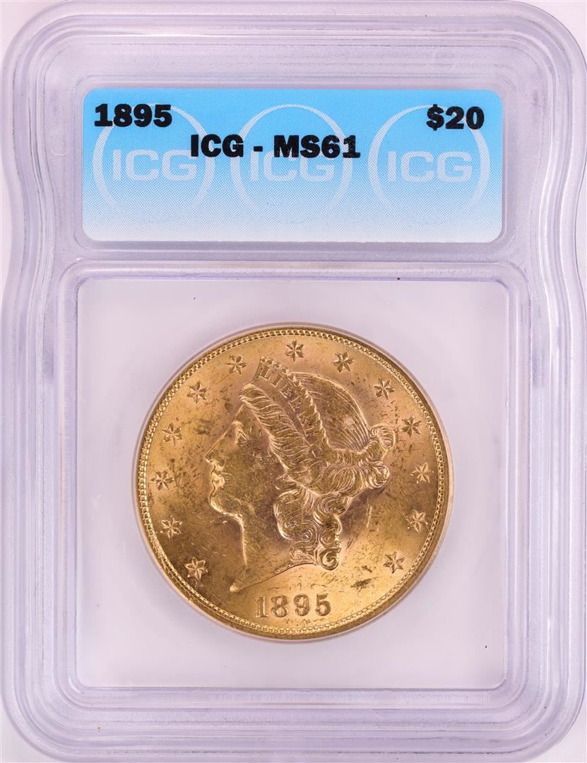 One 1895 $20 Liberty Head Double Eagle Gold Coin ICG MS61. ICG Certified.