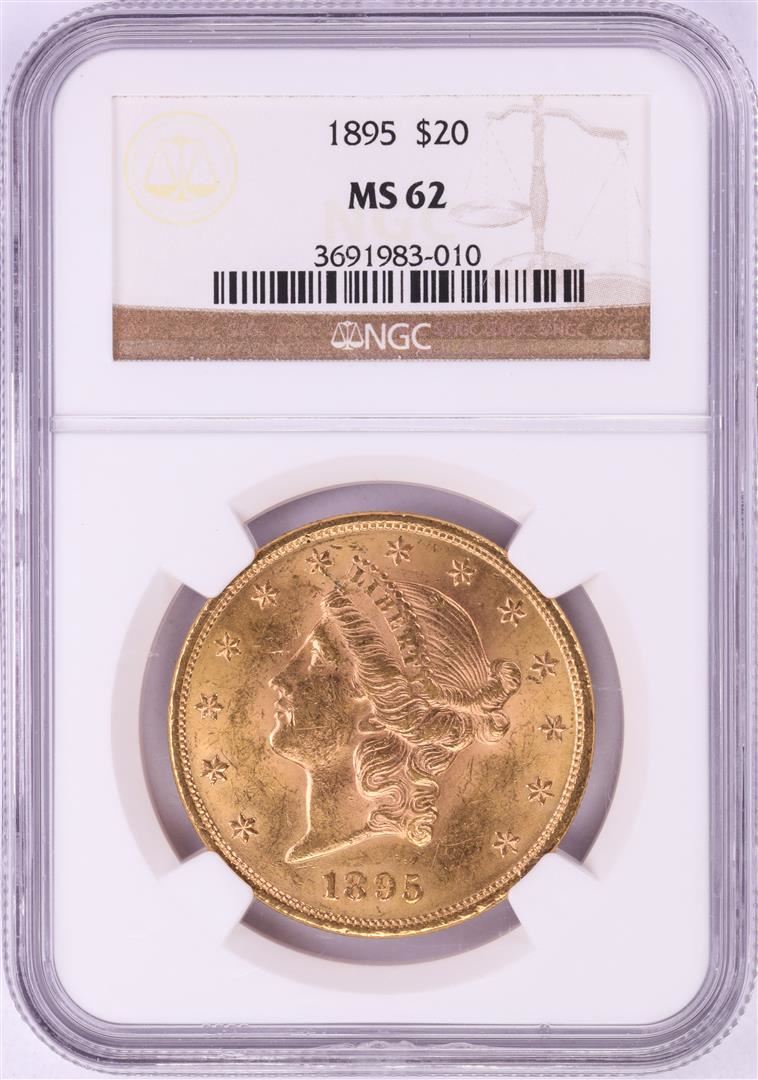 One 1895 $20 Liberty Head Double Eagle Gold Coin NGC MS62. NGC Certified.