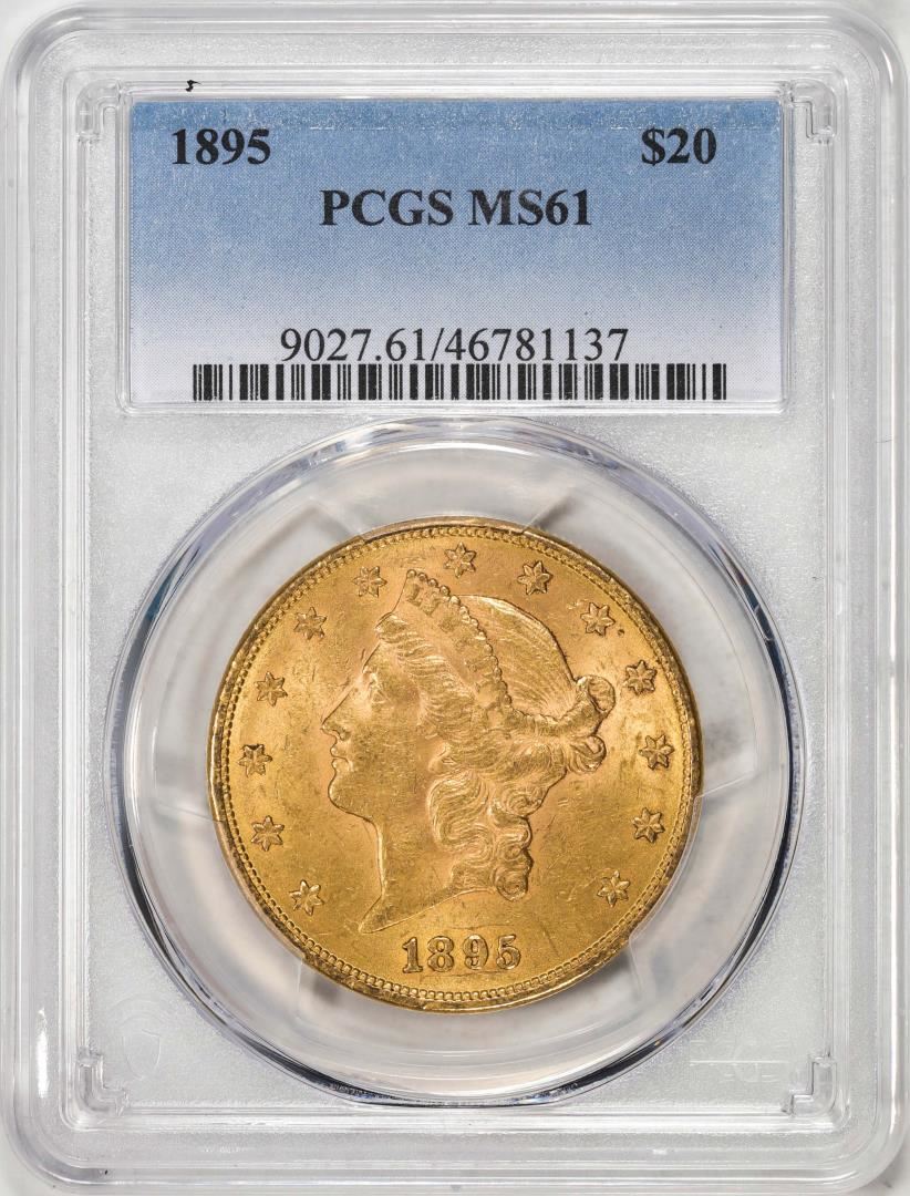 One 1895 $20 Liberty Head Eagle Gold Coin PCGS MS61. PCGS Graded.