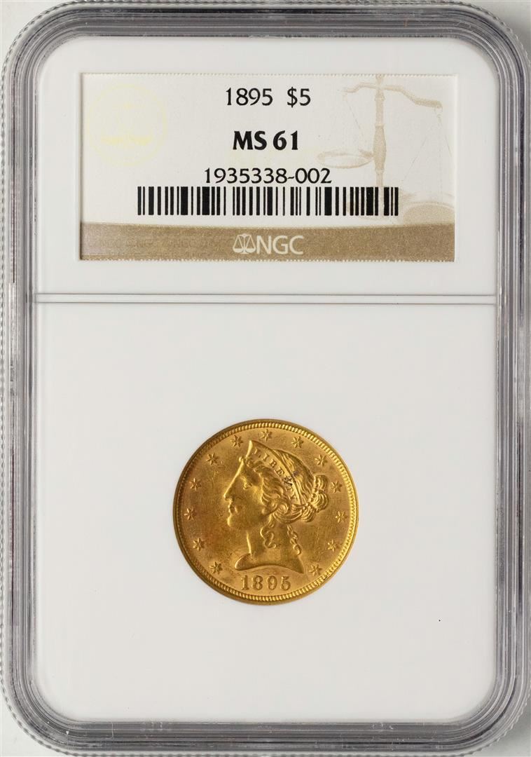 One 1895 $5 Liberty Half Eagle Gold Coin NGC MS61. NGC Certified.