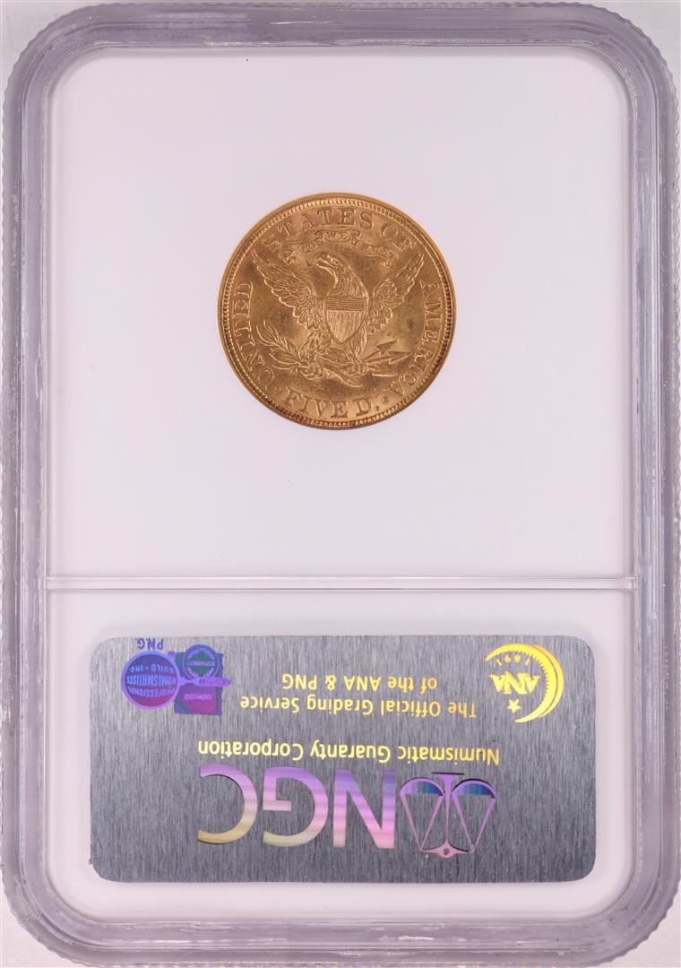 One 1895 $5 Liberty Head Half Eagle Gold Coin NGC MS61. NGC Certified.