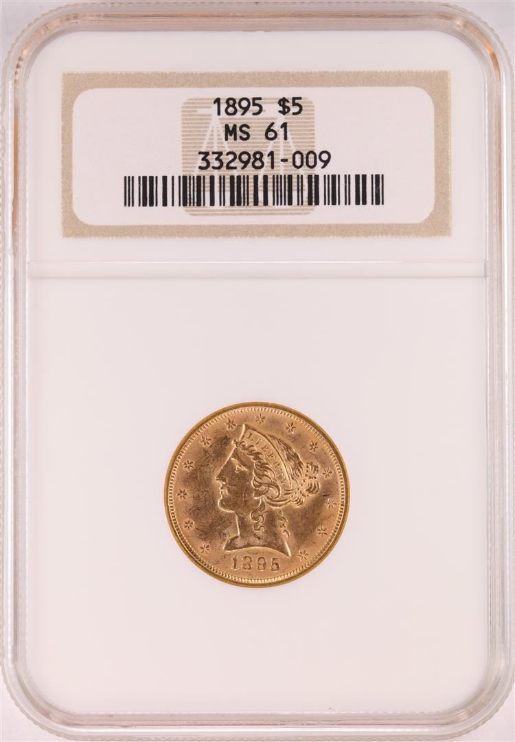 One 1895 $5 Liberty Head Half Eagle Gold Coin NGC MS61. NGC Certified.