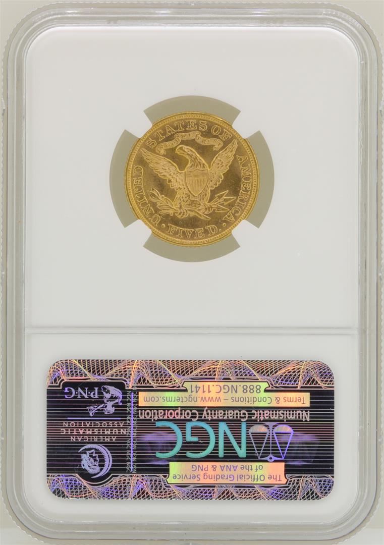 One 1895 $5 Liberty Head Half Eagle Gold Coin NGC MS62. NGC Certified.