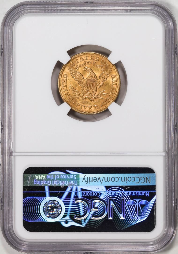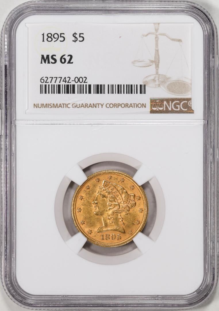 One 1895 $5 Liberty Head Half Eagle Gold Coin NGC MS62. NGC Certified.