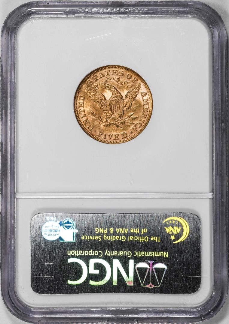 One 1895 $5 Liberty Head Half Eagle Gold Coin NGC MS62. NGC Certified.