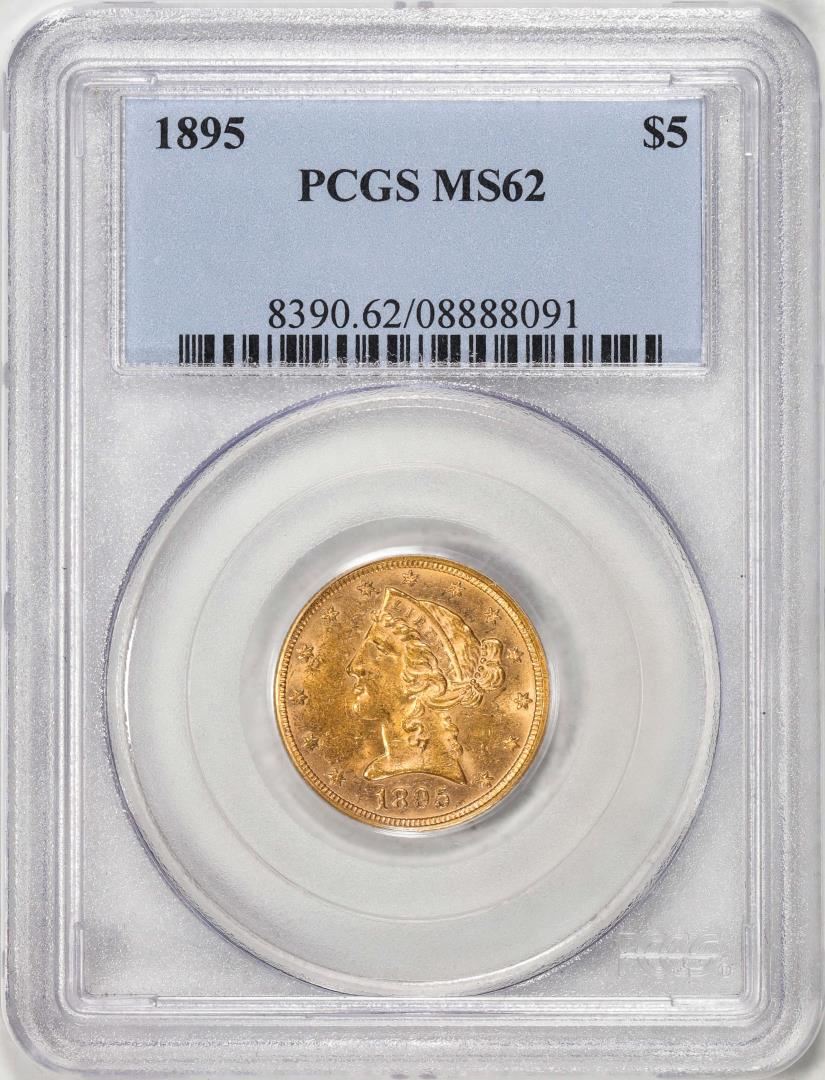 One 1895 $5 Liberty Head Half Eagle Gold Coin NGC MS62. NGC Certified.