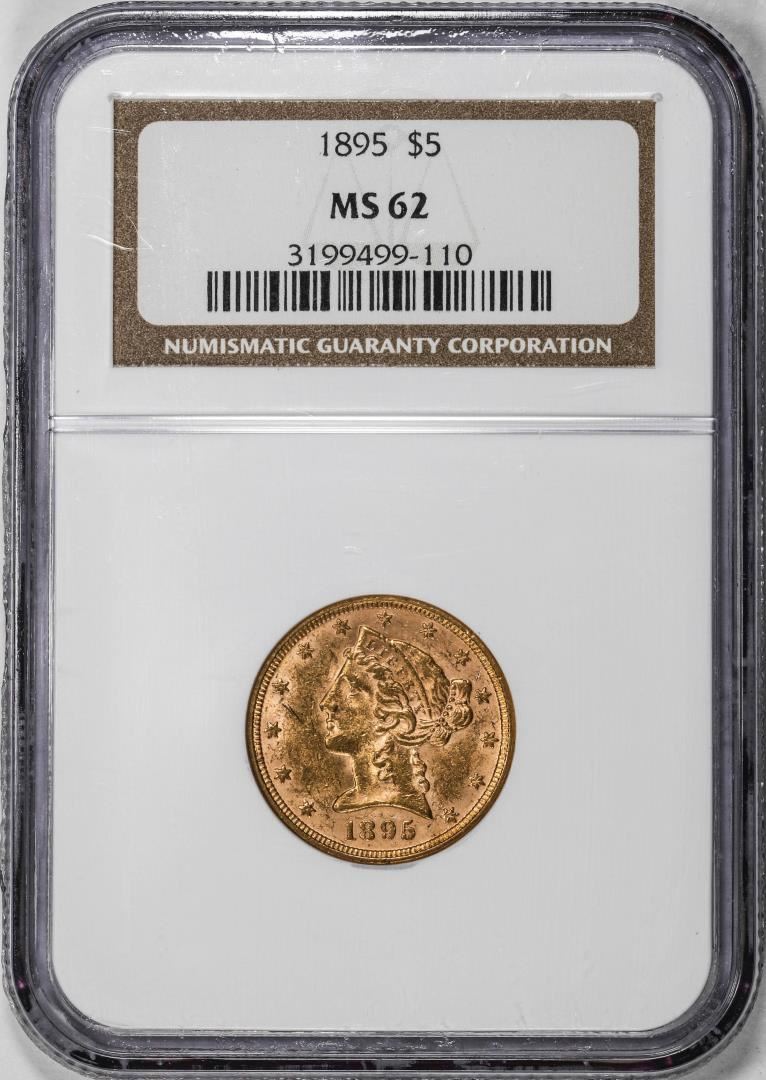 One 1895 $5 Liberty Head Half Eagle Gold Coin NGC MS62. NGC Certified.