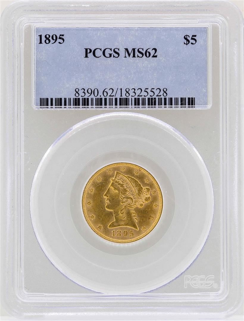 One 1895 $5 Liberty Head Half Eagle Gold Coin PCGS MS62. PCGS Graded.