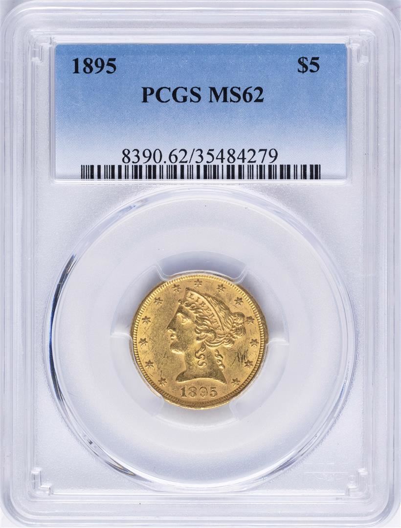 One 1895 $5 Liberty Head Half Eagle Gold Coin PCGS MS62. PCGS Graded.