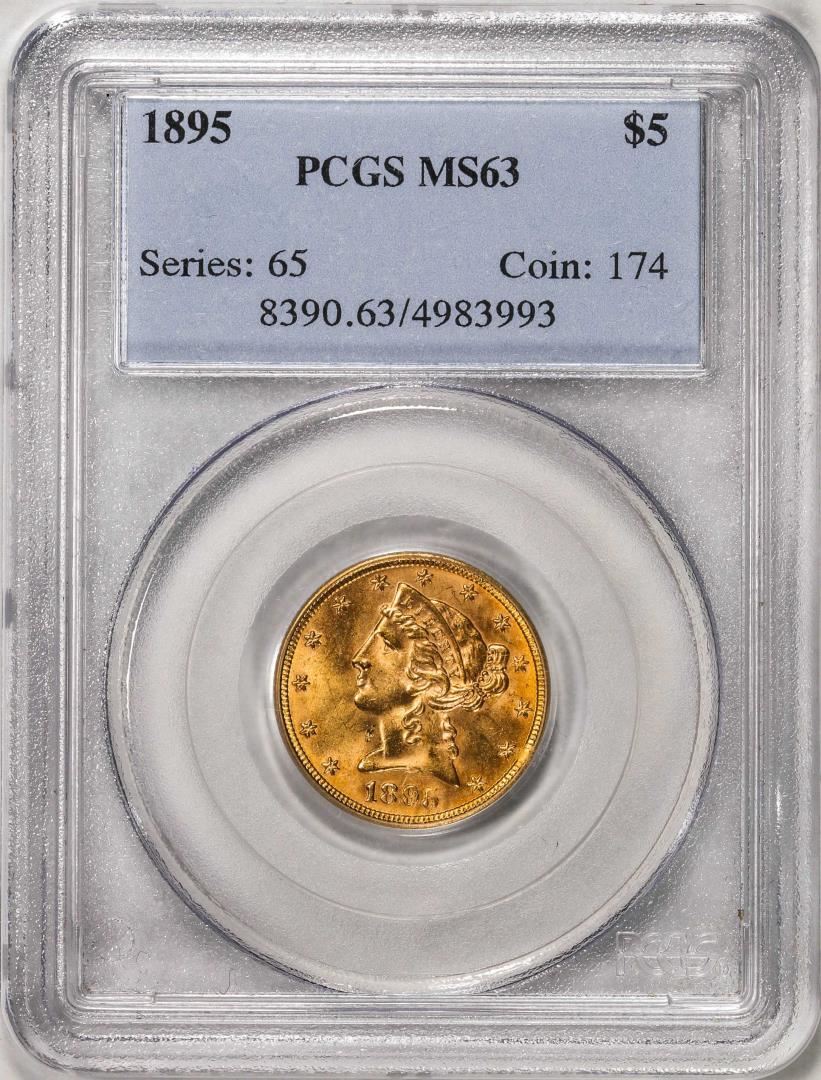 One 1895 $5 Liberty Head Half Eagle Gold Coin PCGS MS63. PCGS Graded.