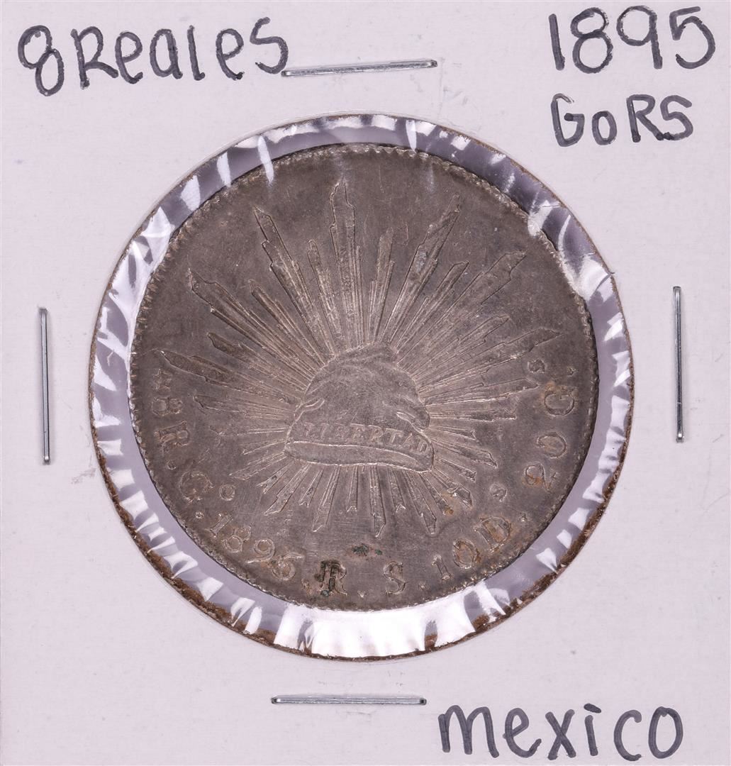 One 1895 Go RS Mexico 8 Reales Silver Coin.