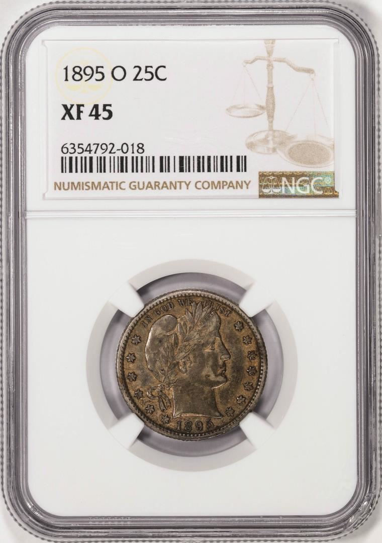 One 1895-O Barber Quarter Coin NGC XF45. NGC Certified.