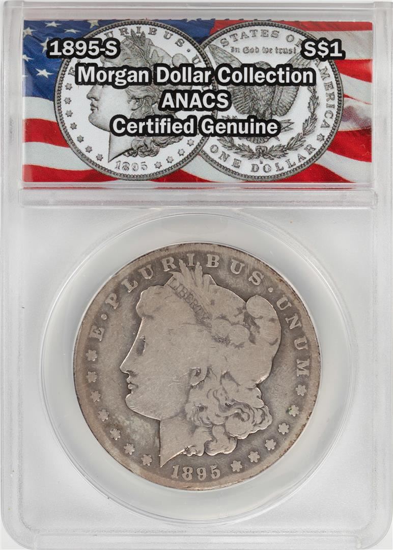 One 1895-S $1 Morgan Silver Dollar Coin ANACS Certified Genuine. ANACS Certified.