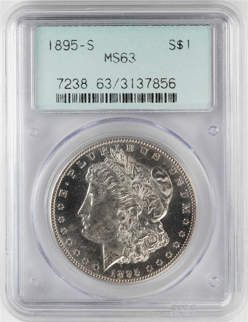 One 1895-S $1 Morgan Silver Dollar Coin PCGS MS63 Old Green Holder. PCGS Graded.