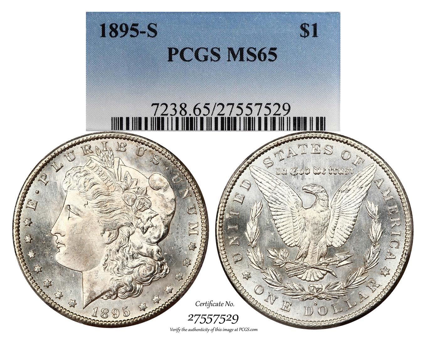 One 1895-S $1 Morgan Silver Dollar Coin PCGS MS65. PCGS Graded.