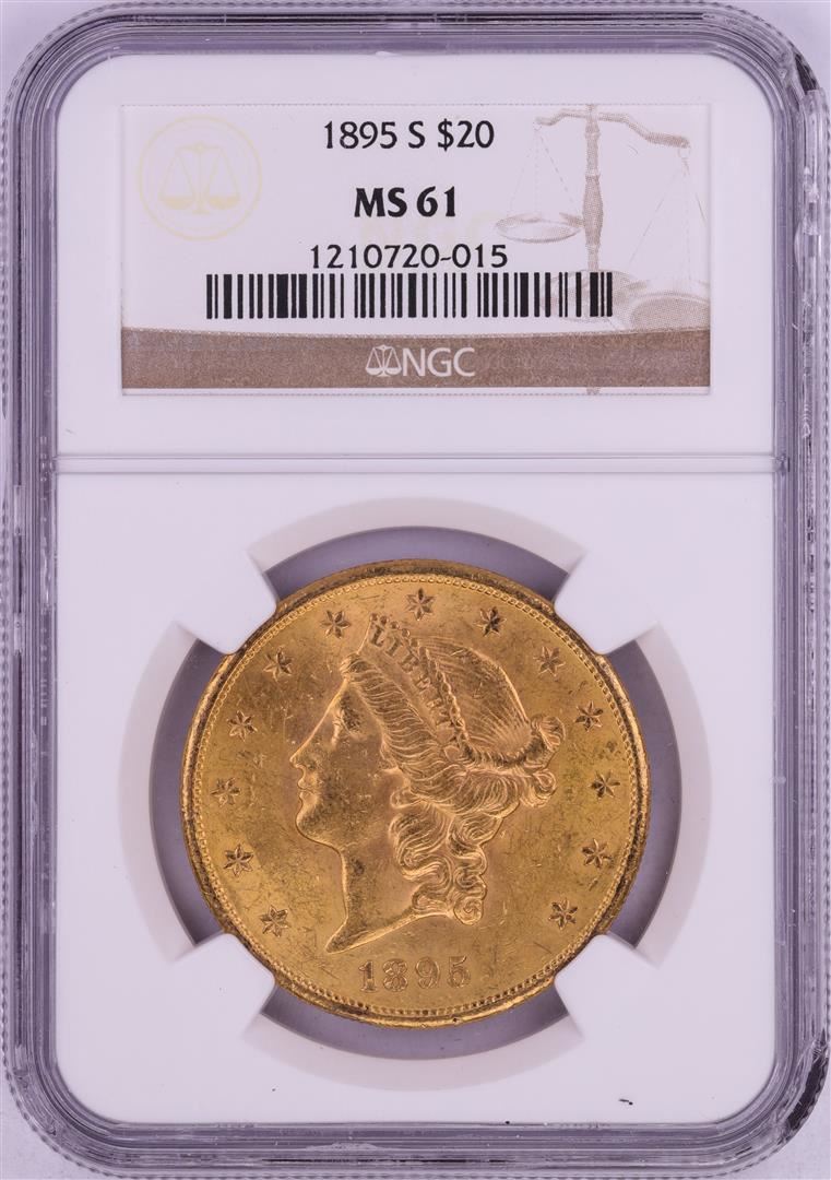 One 1895-S $20 Liberty Head Double Eagle Gold Coin NGC MS61- Chipped Holder. NGC Certified.