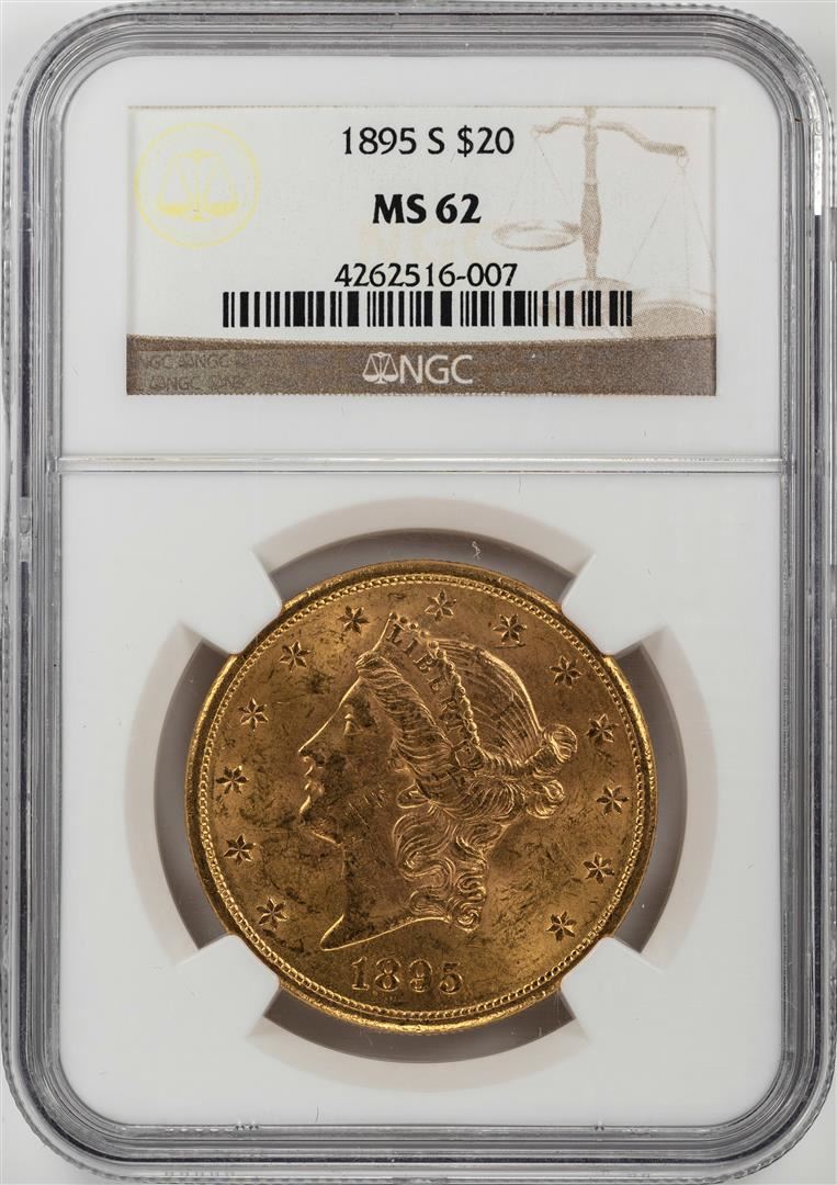 One 1895-S $20 Liberty Head Double Eagle Gold Coin NGC MS62. NGC Certified.