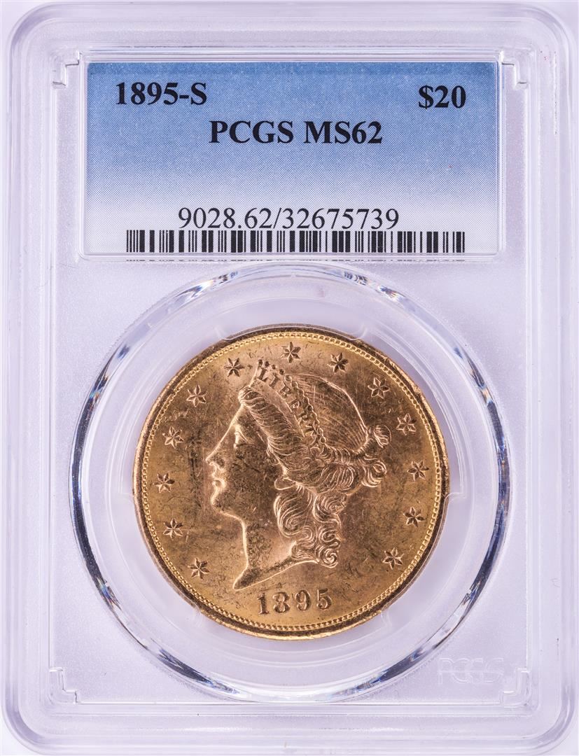 One 1895-S $20 Liberty Head Double Eagle Gold Coin PCGS MS62. PCGS Graded.