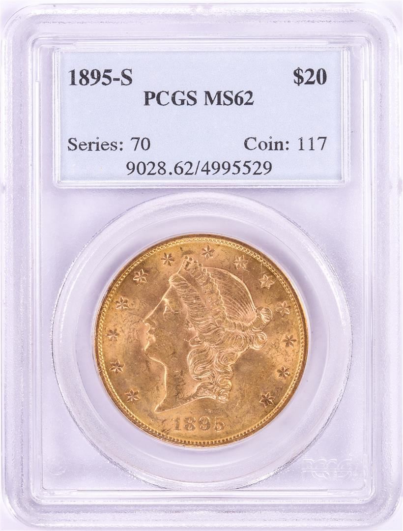 One 1895-S $20 Liberty Head Double Eagle Gold Coin PCGS MS62. PCGS Graded.