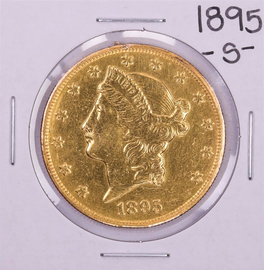 One 1895-S $20 Liberty Head Double Eagle Gold Coin, it should be noted that the reverse at the 6 O'clock position has some rim damage.