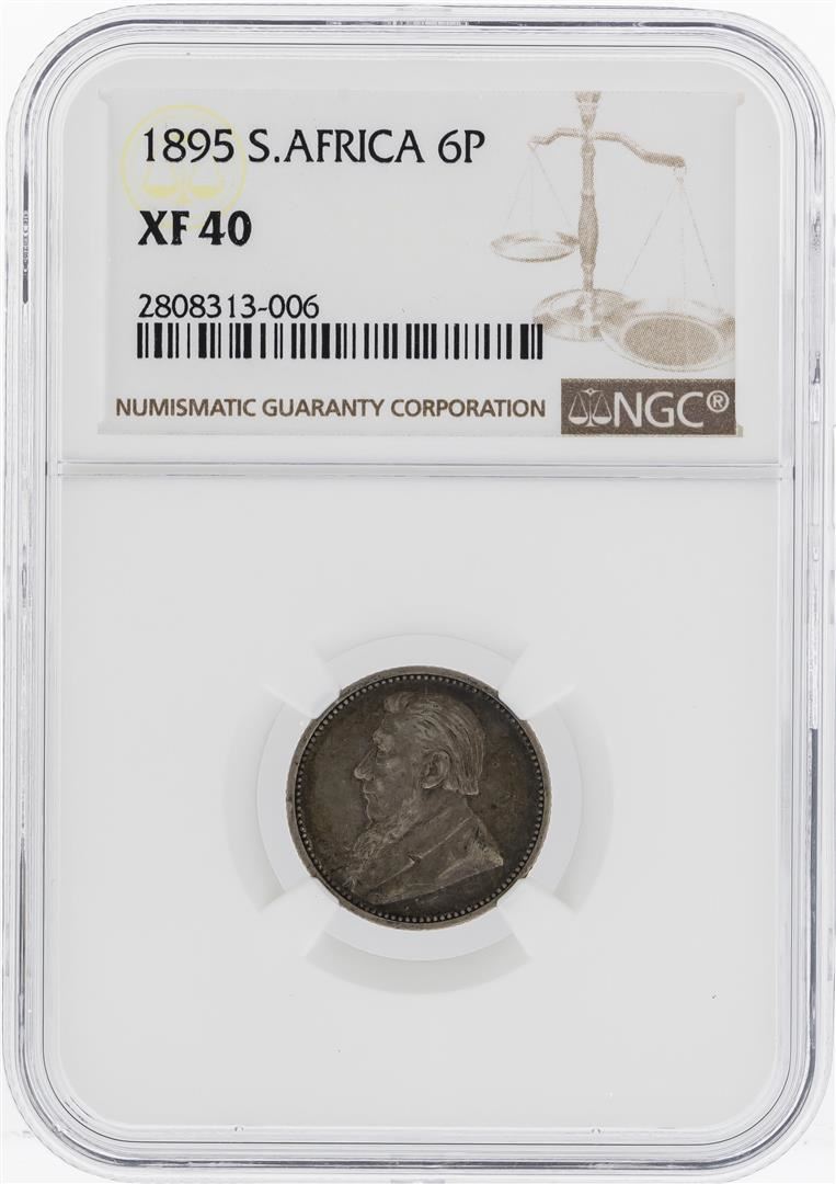 One 1895 South Africa 6 Pence Coin NGC XF40. NGC Certified.