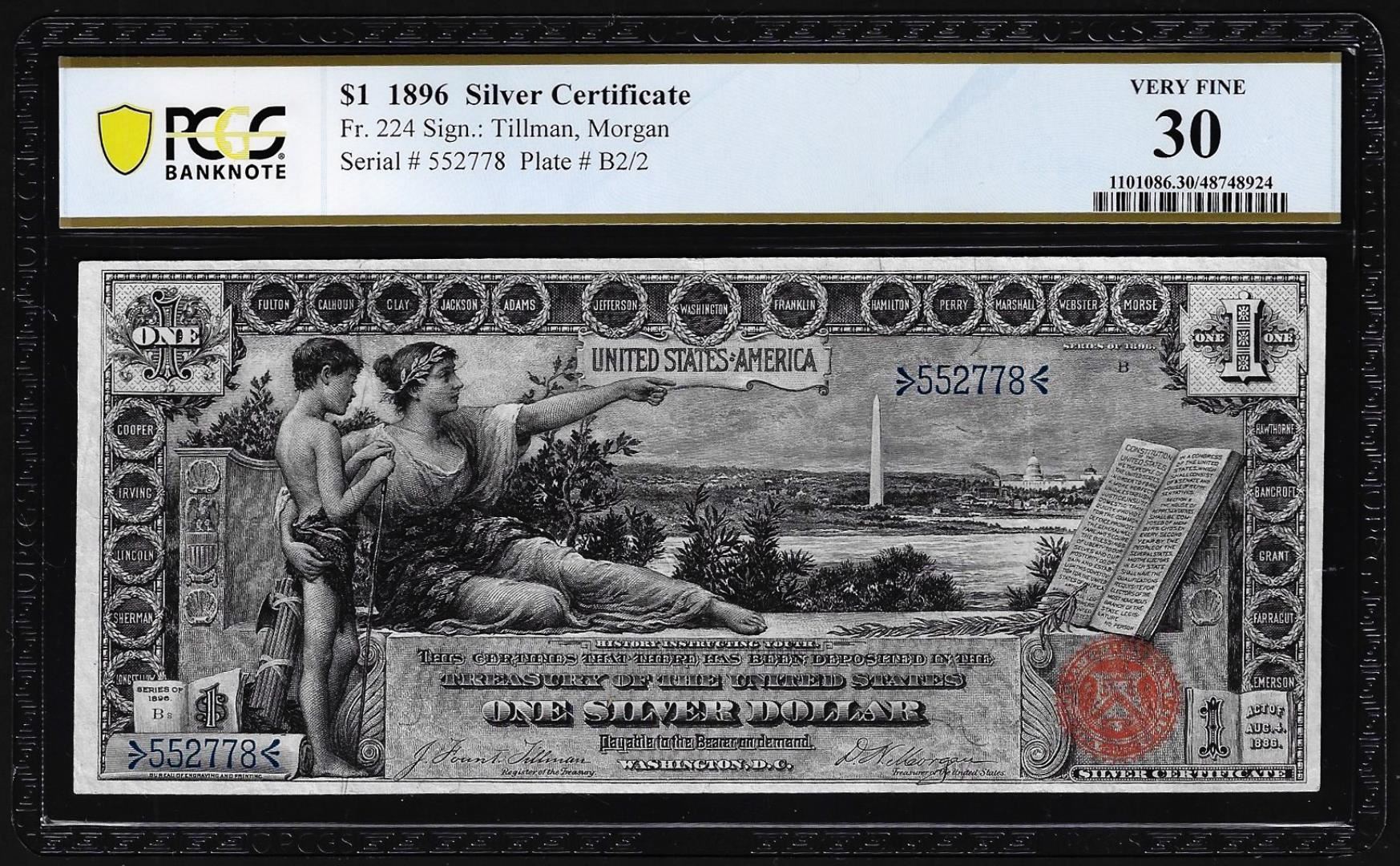 1896 $1 Educational Silver Certificate Note Fr.224 PCGS Very Fine 30