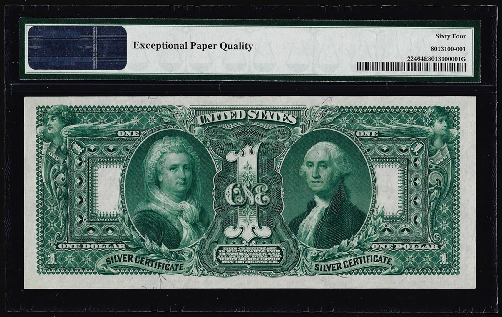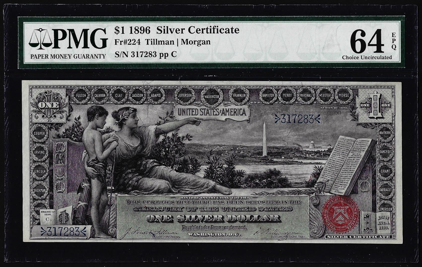 One 1896 $1 Educational Silver Certificate Note Fr.224 PMG Choice Uncirculated 64EPQ. PMG Certified.