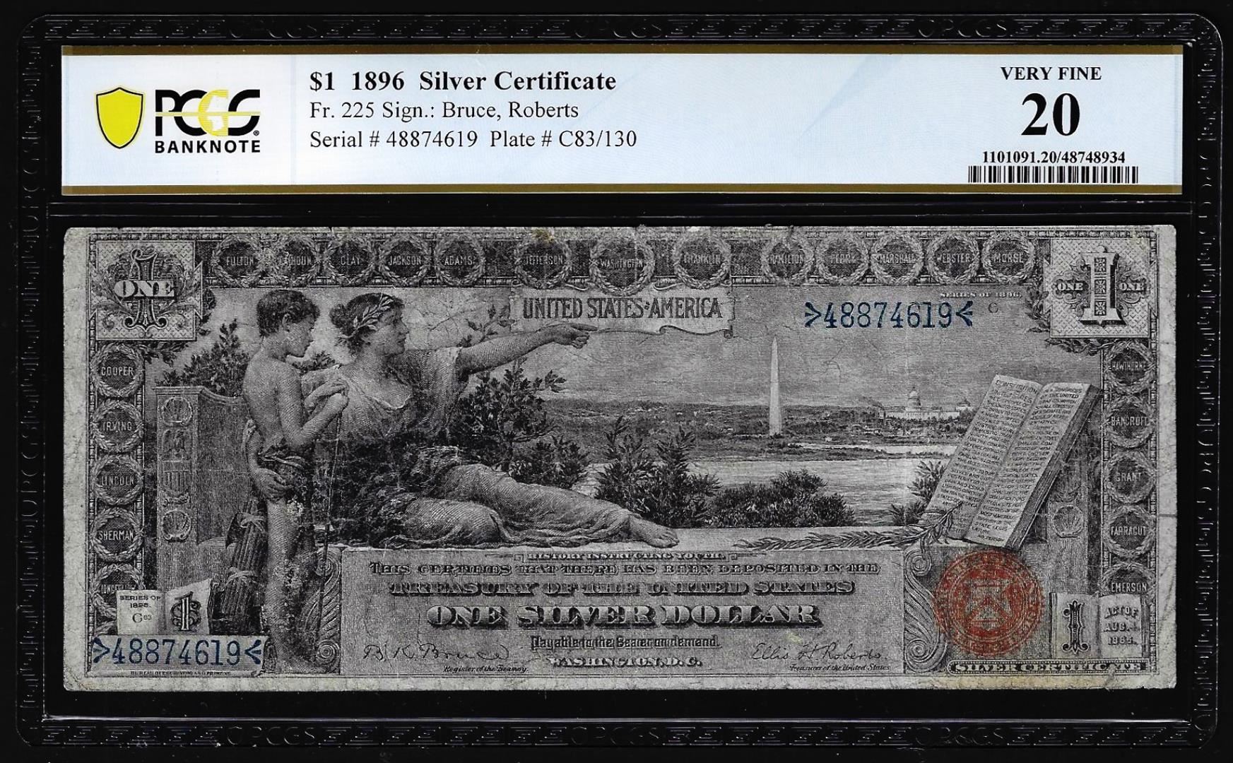 1896 $1 Educational Silver Certificate Note Fr.225 PCGS Very Fine 20