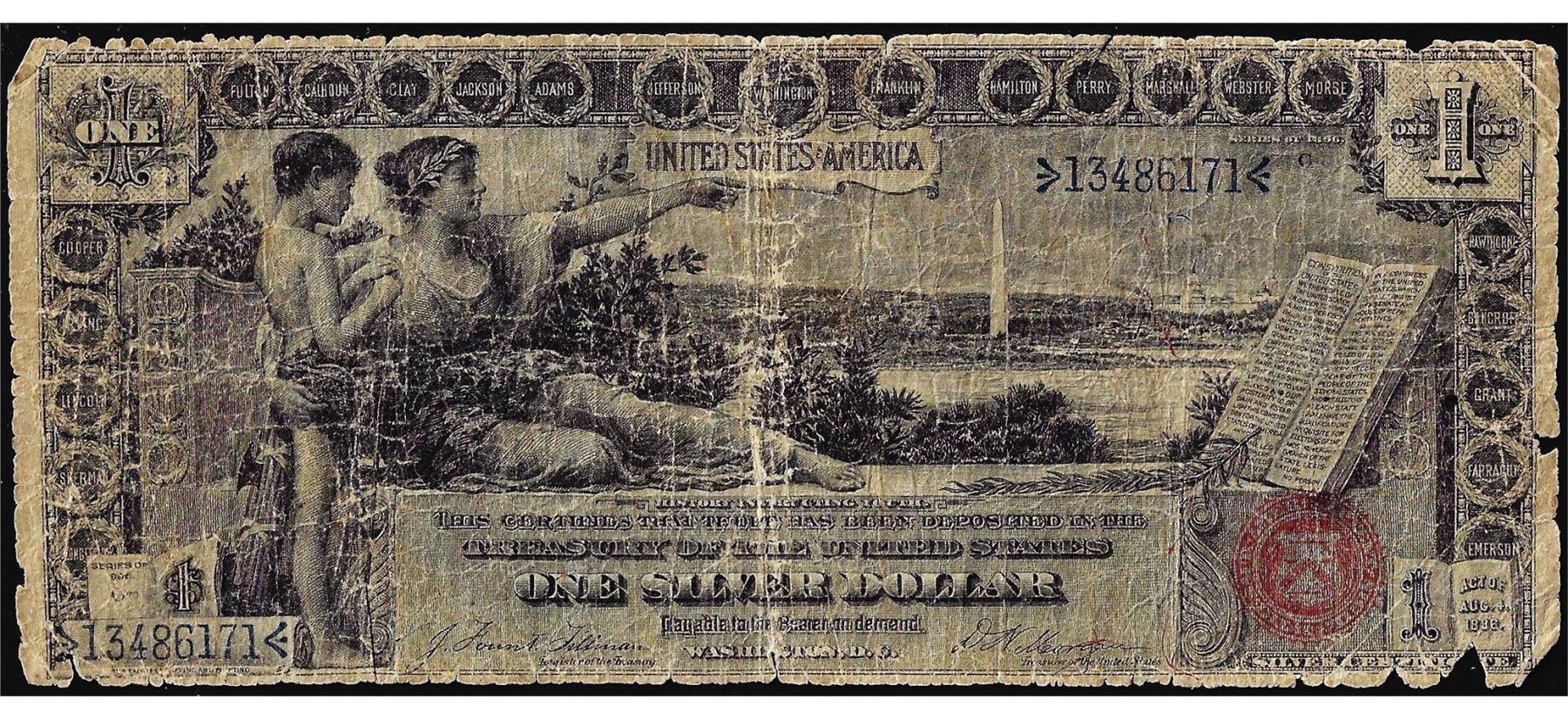 One 1896 $1 Educational Silver Certificate Note.