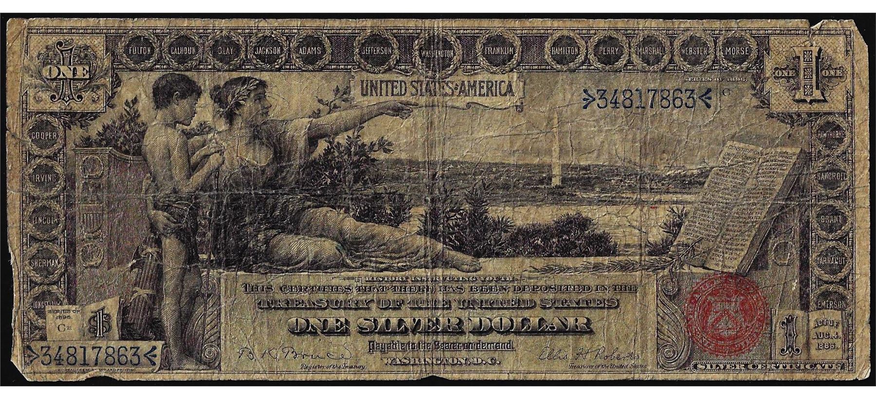 One 1896 $1 Educational Silver Certificate Note.