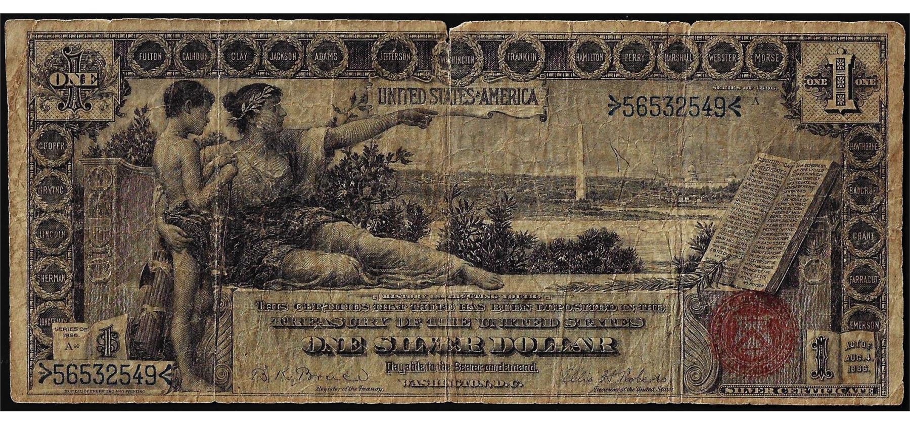 One 1896 $1 Educational Silver Certificate Note.