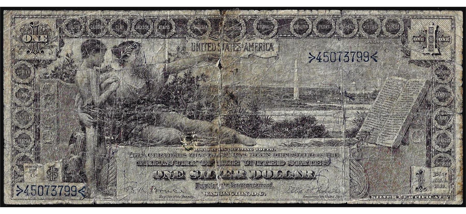 One 1896 $1 Educational Silver Certificate Note.
