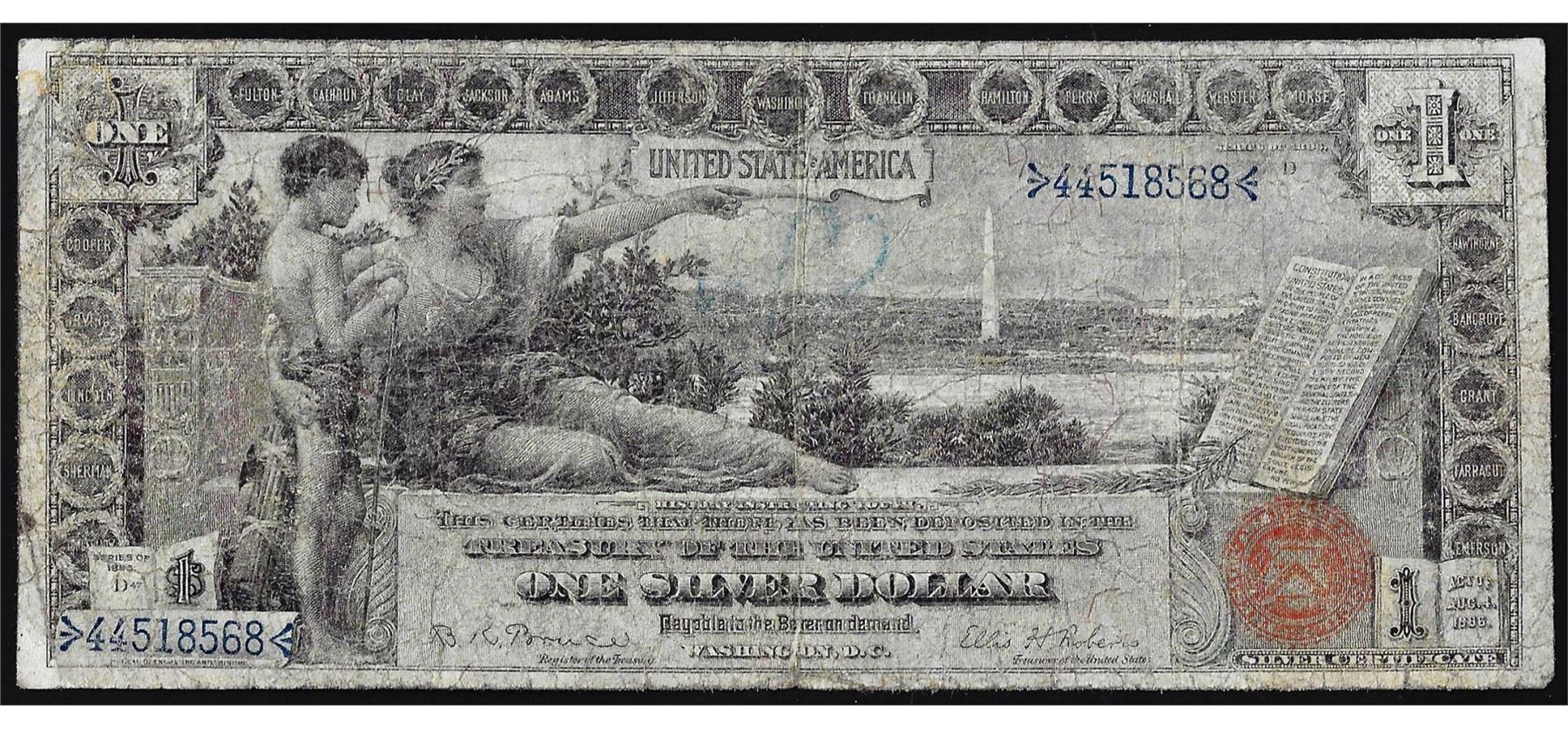One 1896 $1 Educational Silver Certificate Note.