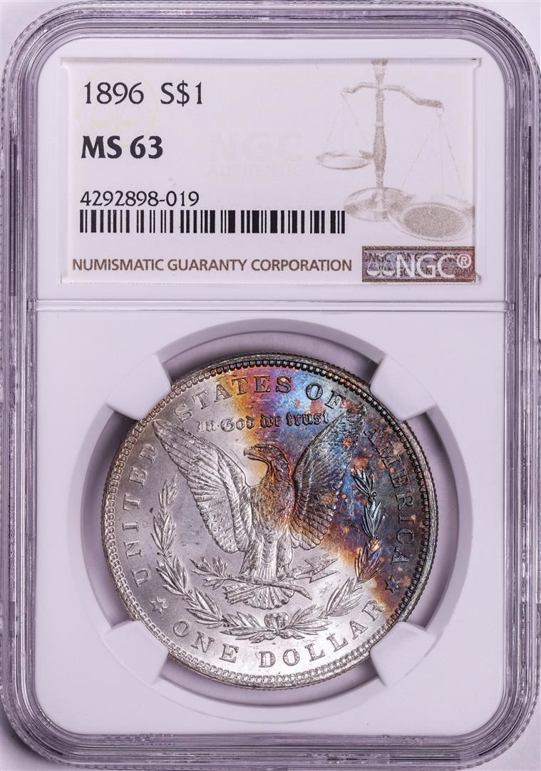 One 1896 $1 Morgan Silver Dollar Coin NGC MS63 Amazing Toning. NGC Certified.