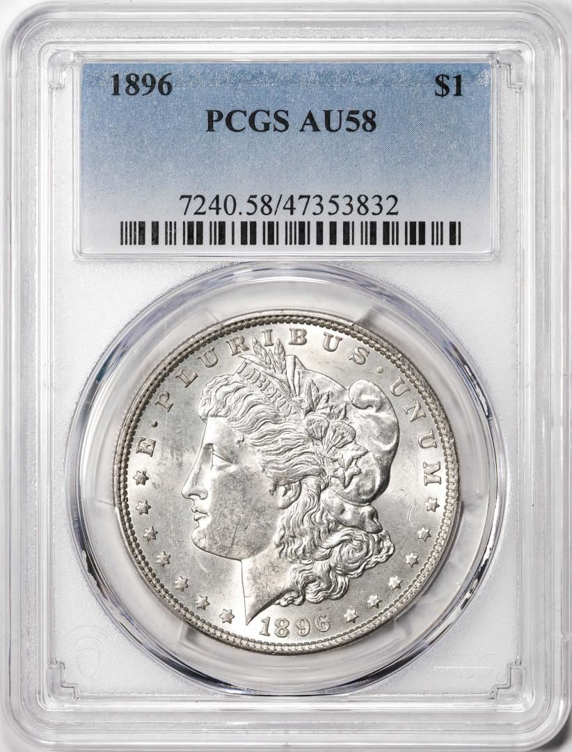One 1896 $1 Morgan Silver Dollar Coin PCGS AU58. PCGS Graded.