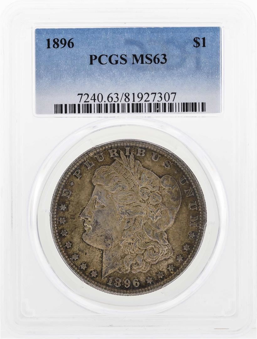One 1896 $1 Morgan Silver Dollar Coin PCGS MS63 Great Toning. PCGS Graded.