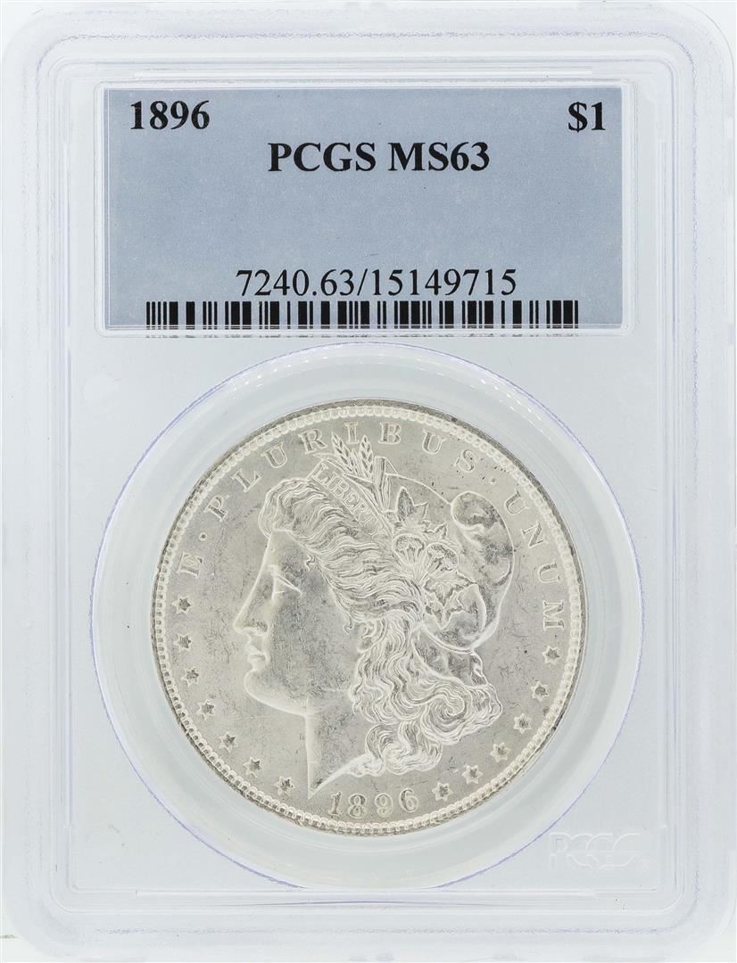 One 1896 $1 Morgan Silver Dollar Coin PCGS MS63. PCGS Graded.