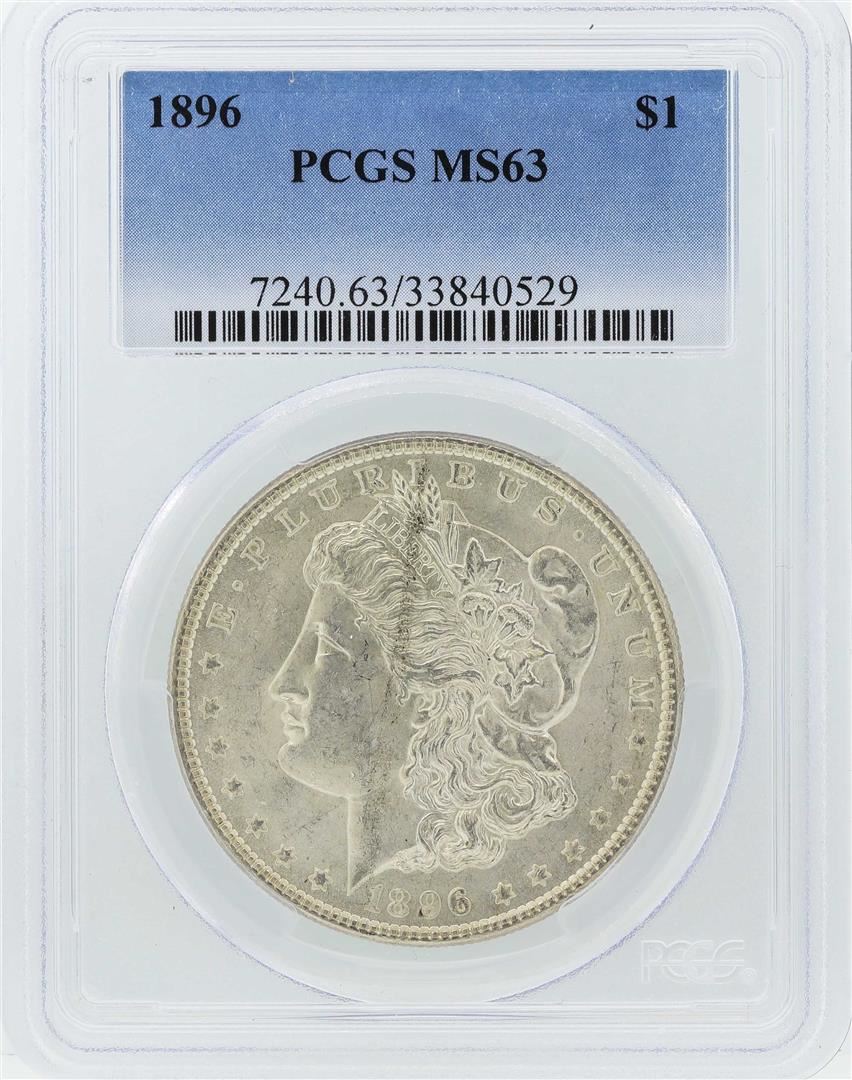 One 1896 $1 Morgan Silver Dollar Coin PCGS MS63. PCGS Graded.