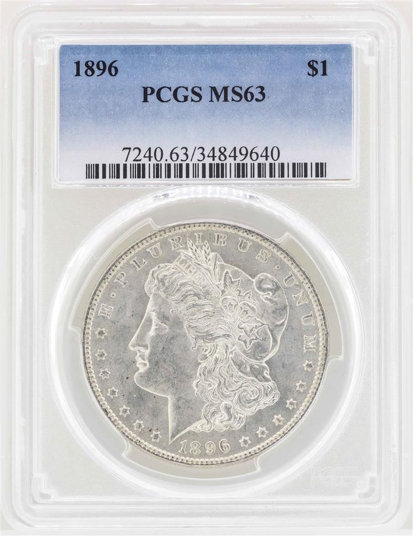 One 1896 $1 Morgan Silver Dollar Coin PCGS MS63. PCGS Graded.