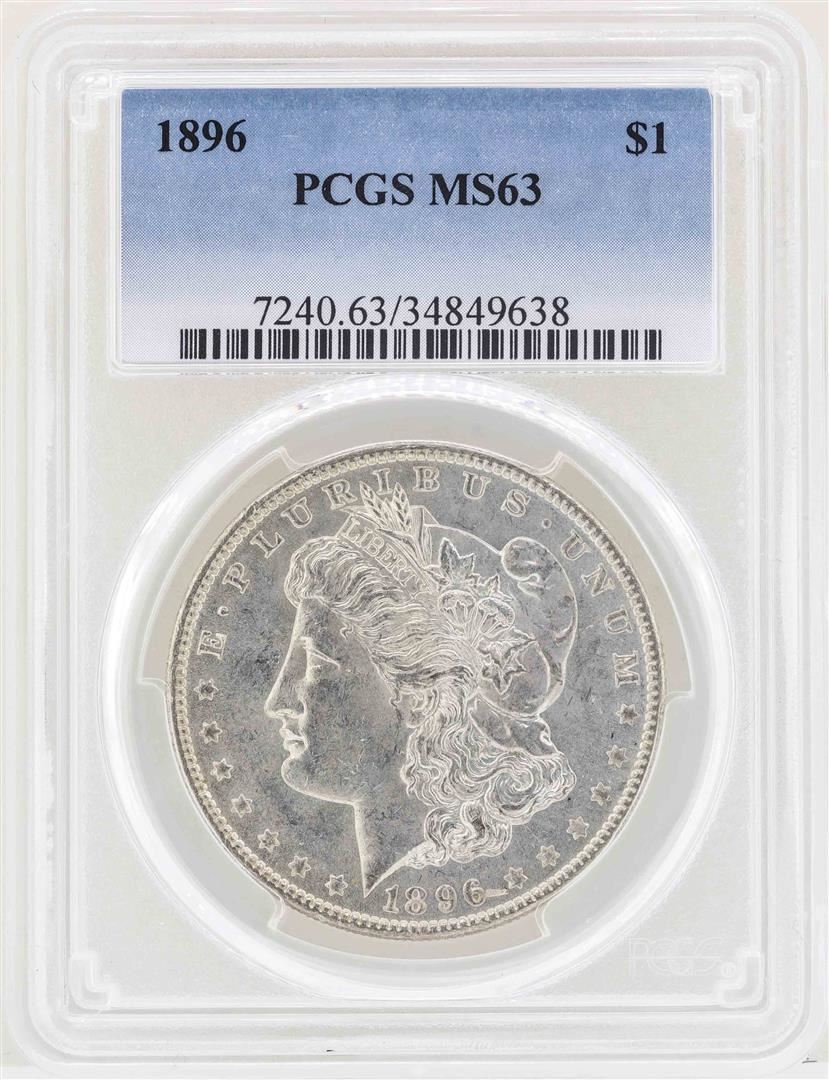 One 1896 $1 Morgan Silver Dollar Coin PCGS MS63. PCGS Graded.