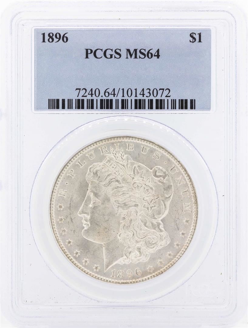 One 1896 $1 Morgan Silver Dollar Coin PCGS MS64. PCGS Graded.