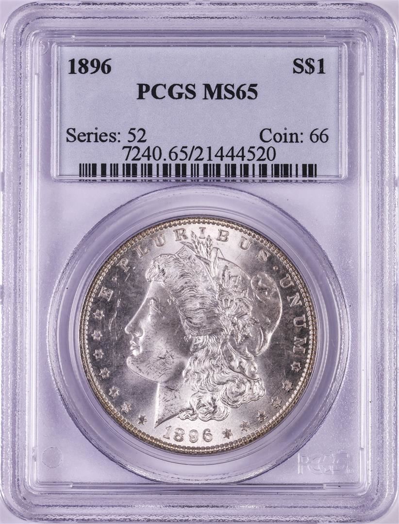 One 1896 $1 Morgan Silver Dollar Coin PCGS MS65. PCGS Graded.