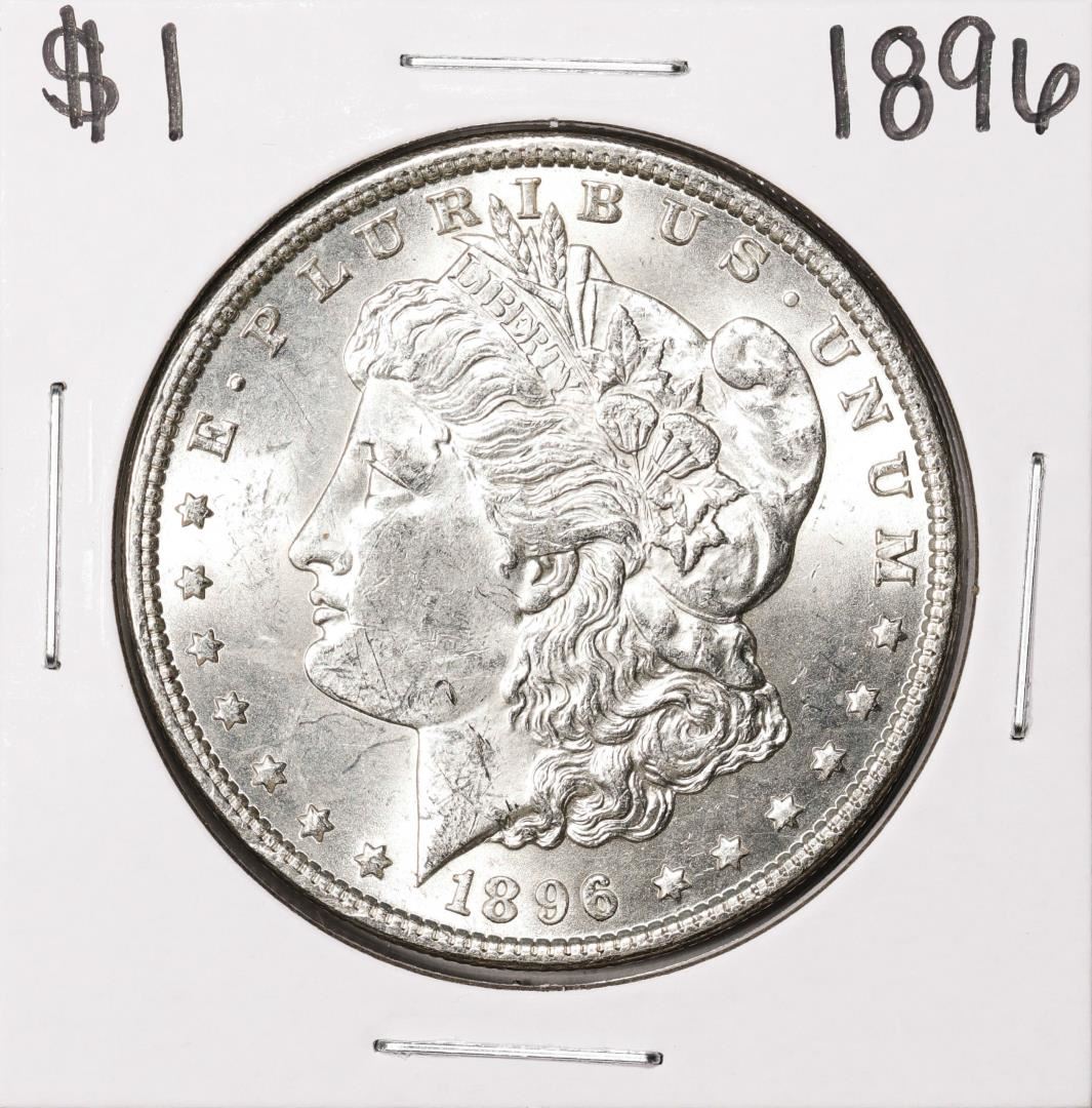 One 1896 $1 Morgan Silver Dollar Coin.