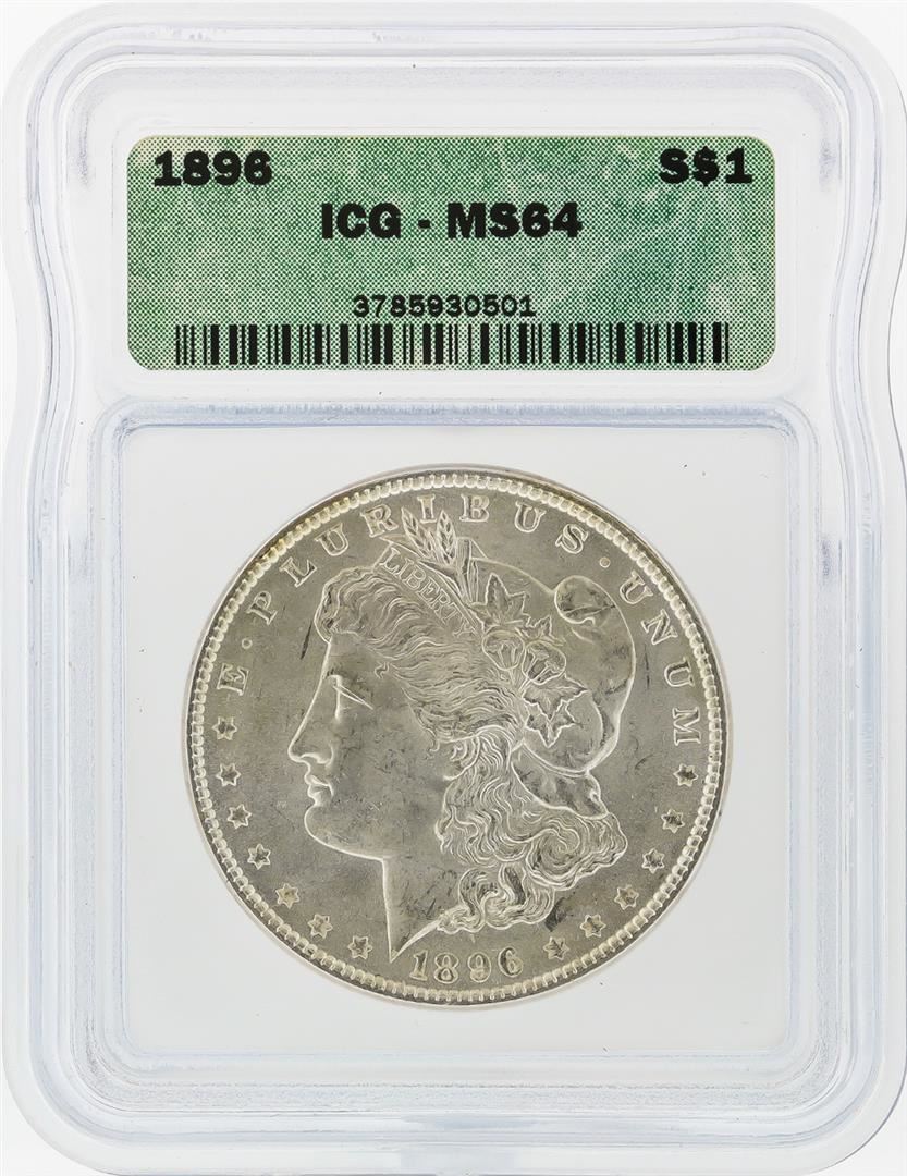 One 1896 $1 Morgan Silver Dollar ICG Graded MS64. ICG Certified.